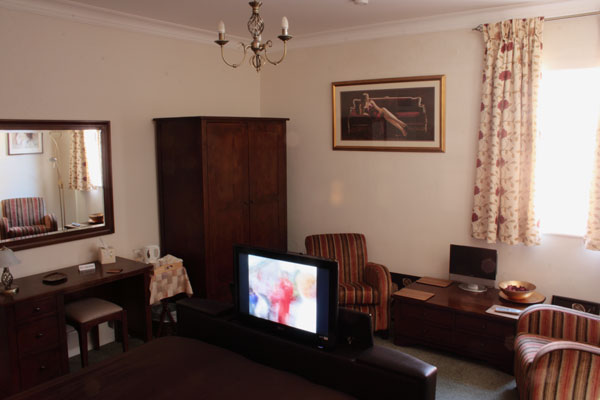 Our rooms are a good size with en-suite amenities, TV and tea/coffee making facilities; Some have a small lounge seating area and two rooms are equipped with a TV-bed!